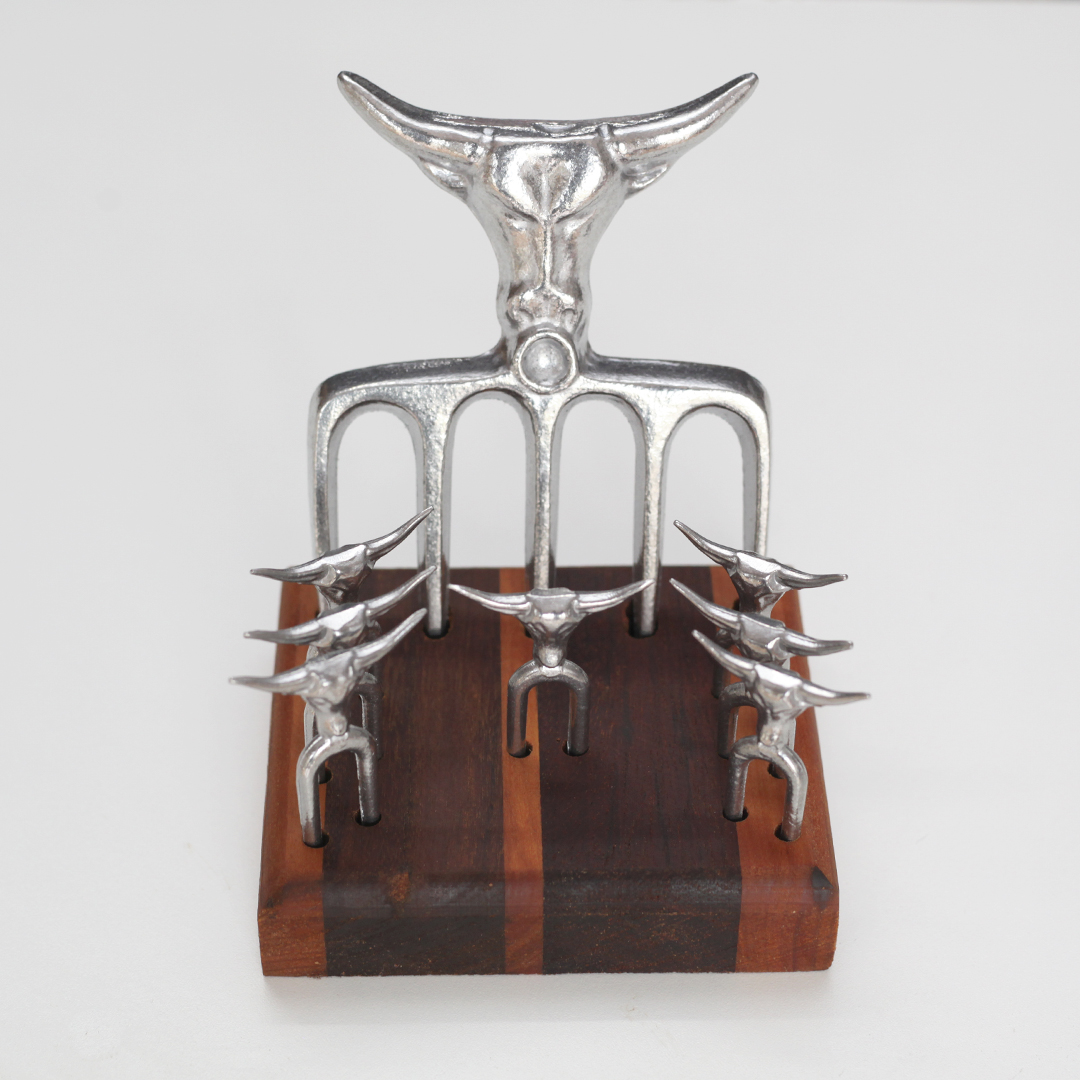 Transforme seus momentos de churrasco em experiências sofisticadas com o nosso Kit para Churrasco. A Pata de Urso, com dimensões de 11 x 15 cm e 5 pontas afiadas, oferece um manuseio confortável e preciso, enquanto os 7 mini garfinhos para petiscos, com 7 cm de comprimento cada, são ideais para espetinhos, queijos e aperitivos diversos.