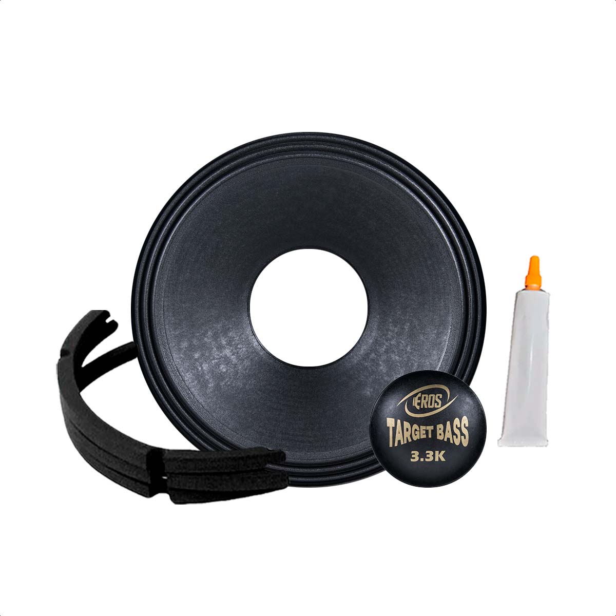 Kit Reparo Eros 100% original para modelo de Alto-Falante E18 Target Bass 3.3K - 1650W RMS com impedância de 4 Ohms. Utilizados na manutenção de alto falantes danificados, os kits de reparo são procurados quando ocorre queima da bobina ou algum tipo de dano no cone do alto falante ou no driver. O kit reparo possibilita efetuar o reparo do alto, evitando assim a necessidade de compra de um novo alto falante.