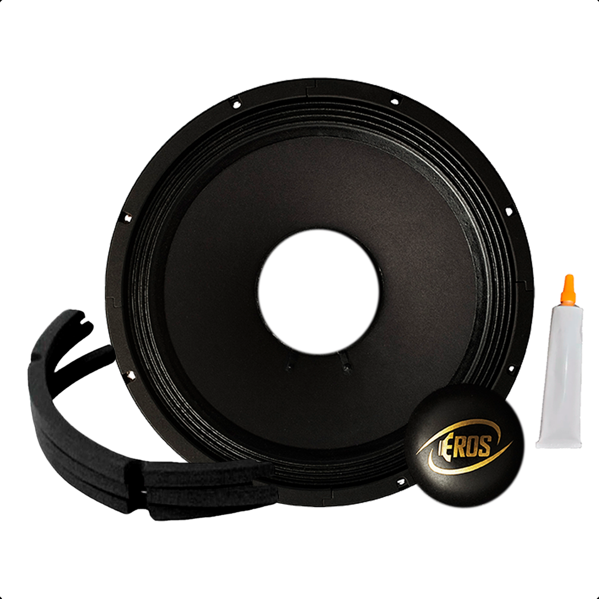 Kit Reparo Eros 100% original para modelo de Alto-Falante EROS – E-2015 GDS - 1000W RMS, com impedância de impedância de 4 ohms. Utilizados na manutenção de alto falantes danificados, os kits de reparo são procurados quando ocorre queima da bobina ou algum tipo de dano no cone do alto falante ou no driver. O kit reparo possibilita efetuar o reparo do alto, evitando assim a necessidade de compra de um novo alto falante.